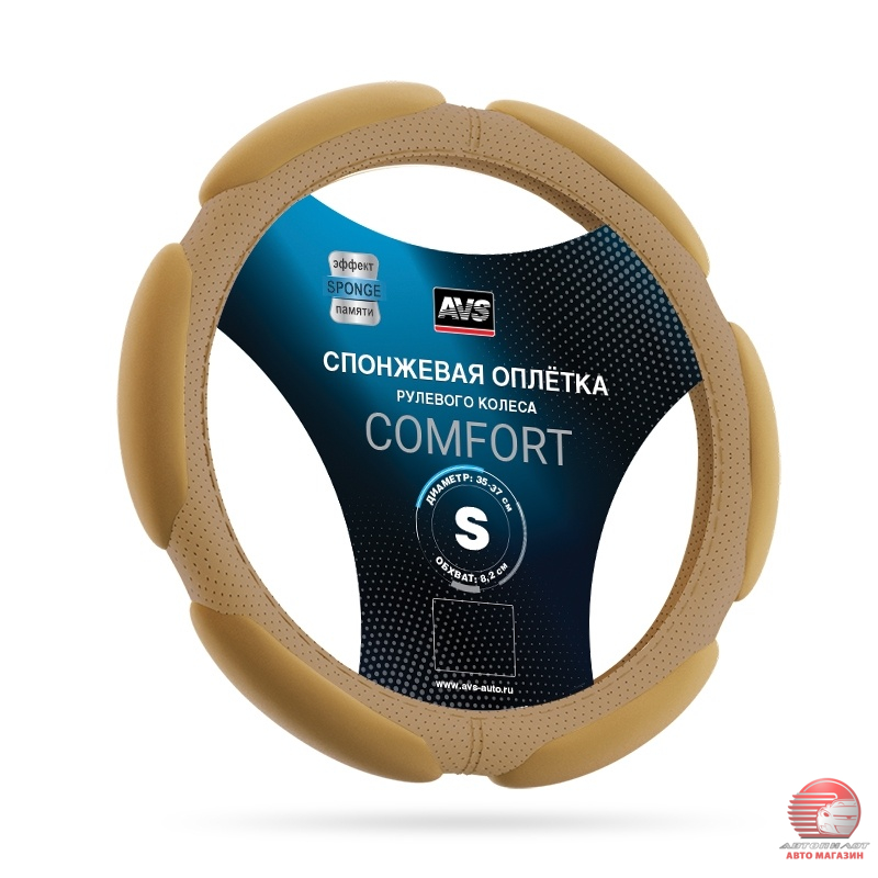 Спонжевая оплётка на руль из экокожи бежевого цвета.