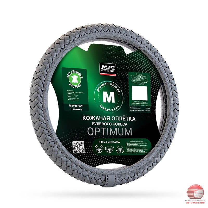 Спонжевая оплётка на руль из экокожи серого цвета.